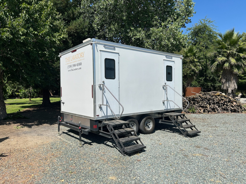 - 2 Station Luxury Restroom Trailer: Compact yet luxurious, ideal for small gatherings and intimate events.